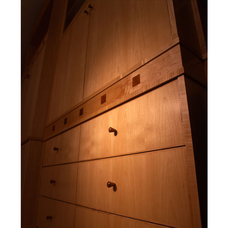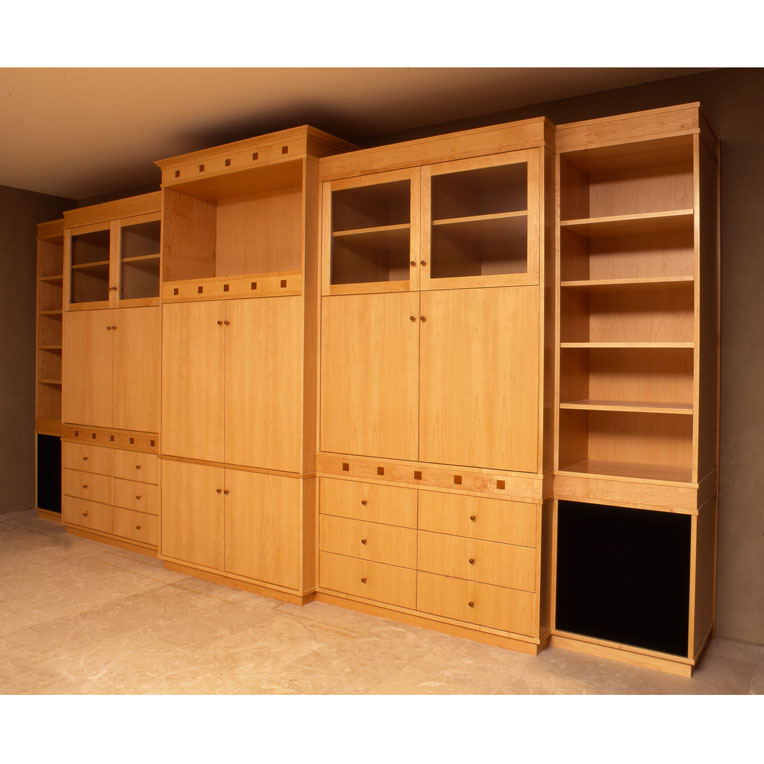 This built in unit was designed and made for a large family room. Retractable doors cover a TV and Hi-Fi equipment.